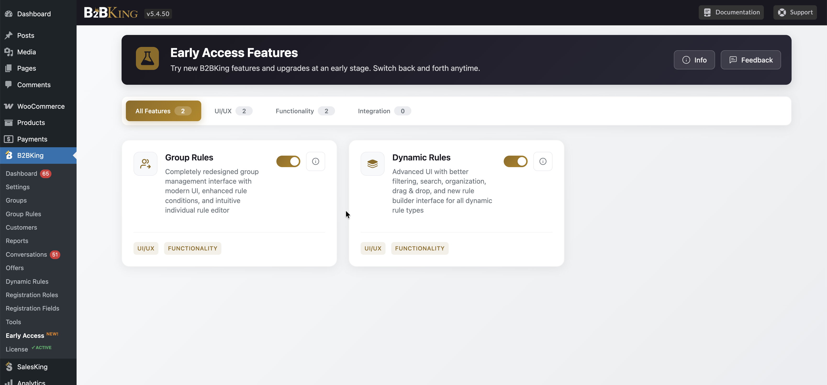 We're thrilled to announce some major developments for B2BKing that mark the beginning of an exciting new chapter for the plugin. Today, we're releasing version 5.4.50, which introduces our new Early Access system and the first glimpse of B2BKing V2.0.