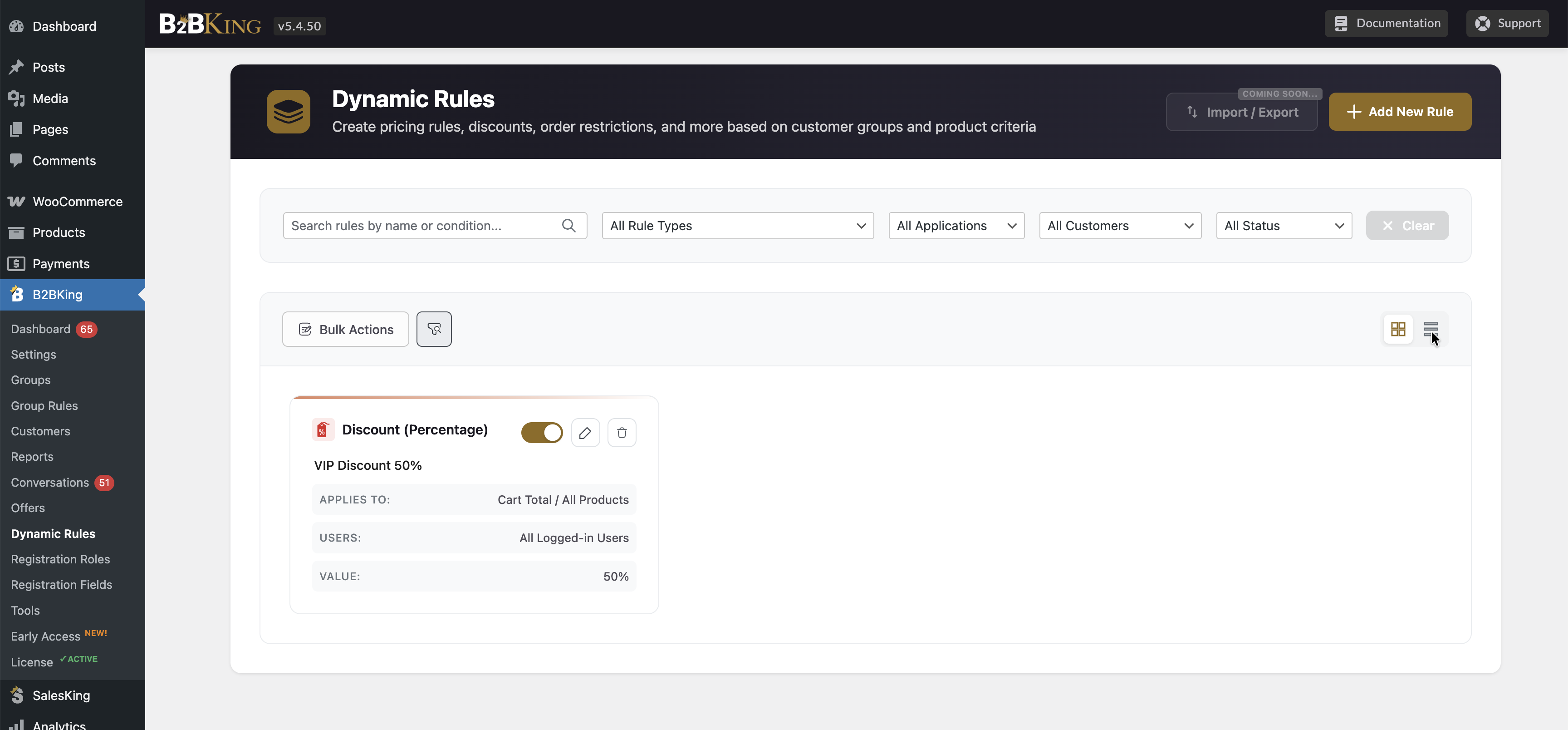 The Dynamic Rules interface has been completely rebuilt: the upgraded version delivers faster performance, cleaner organization, and a more intuitive workflow for managing your B2B rules.