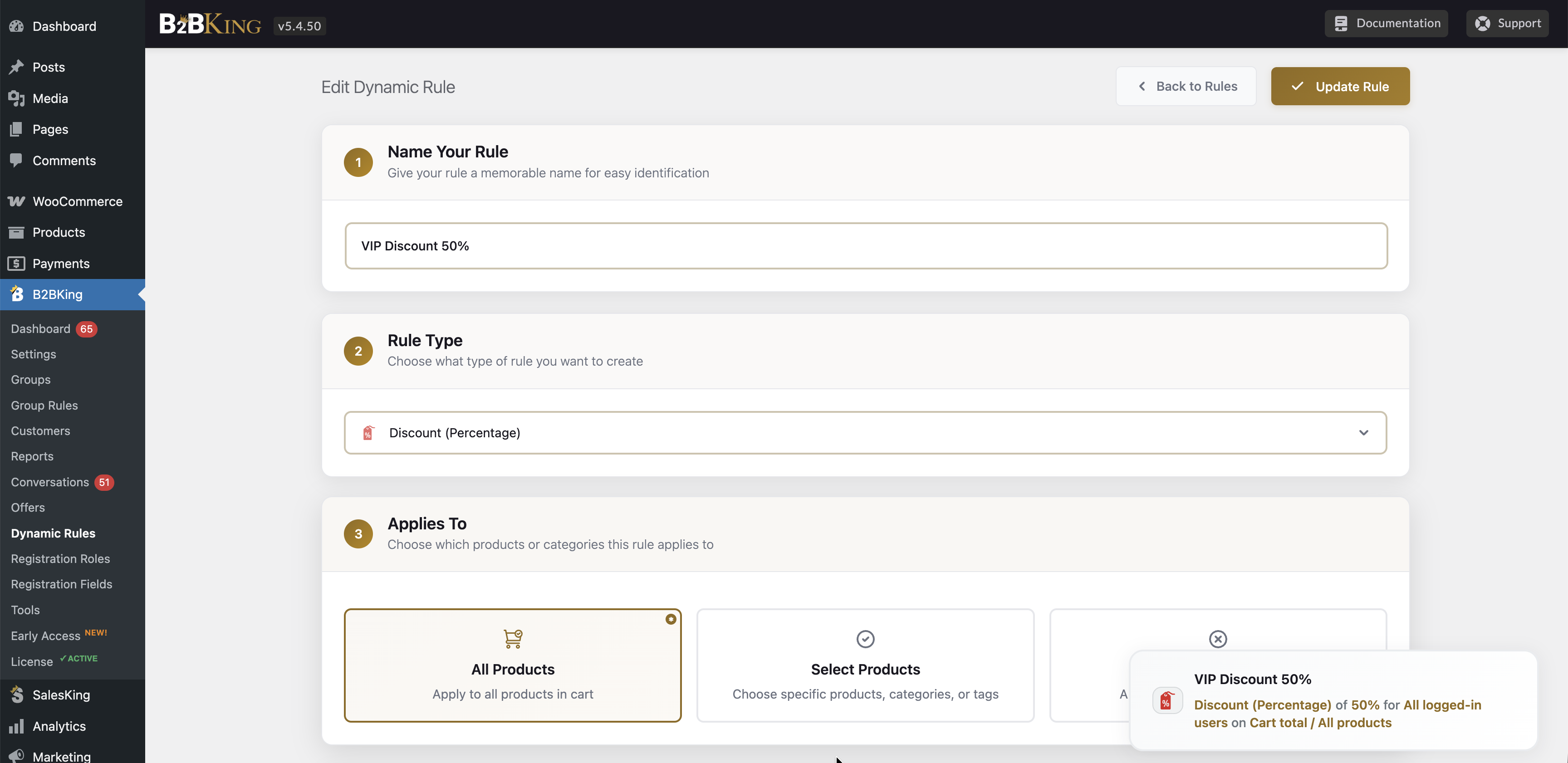 We've been working hard behind the scenes on a comprehensive redesign of B2BKing. Our vision is clear: create a beautiful, modern interface that's both easy to use and incredibly powerful. We're focused on delivering dynamic, fast AJAX loading throughout the plugin, eliminating page refreshes and creating a seamless experience that feels responsive and intuitive.